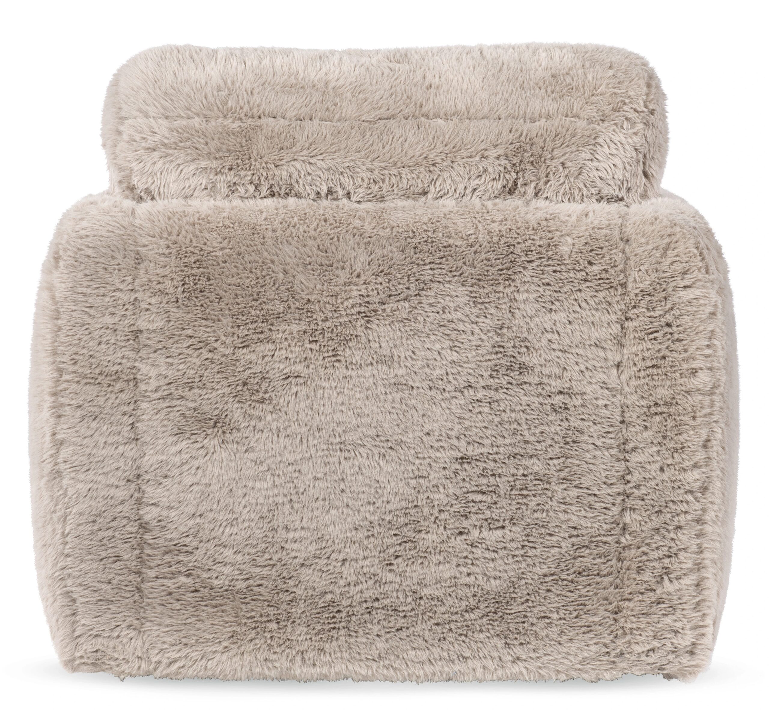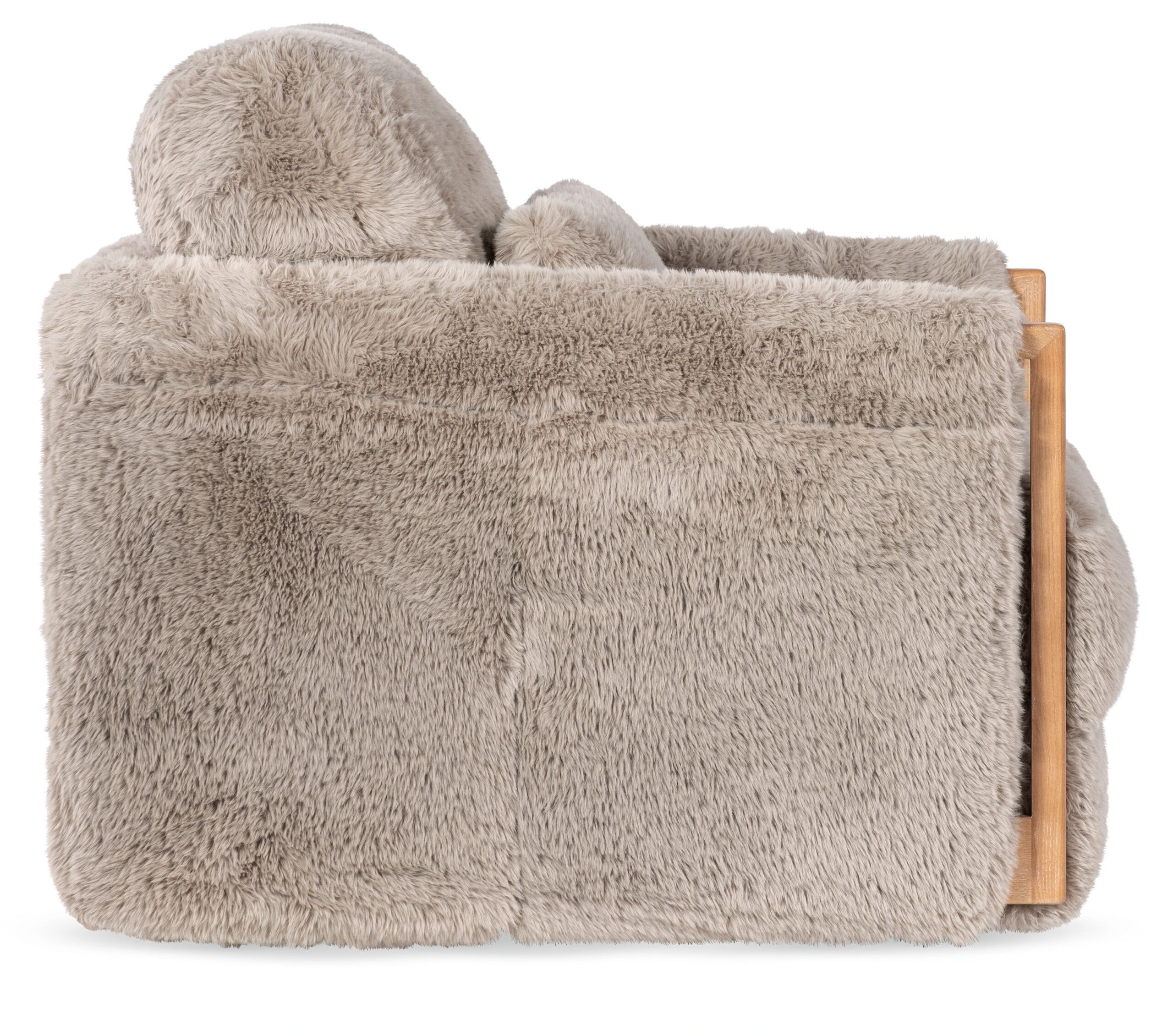 | Exposed wood trim on arm frontsKidney pillowCozy furry fabricSwivel motionFinish: Light wood finish | Yes |