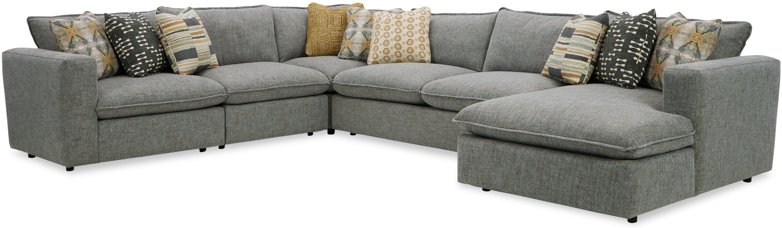 Jaw dropping style meets curl-up comfort in this stunning modular sectional. A simple flange around the seat and back cushions offers a unique and elevated touch, while the Blend Down Cloud cushions envelop you in comfort. Mix and match the single pieces to create dozens of shapes and configurations and find one perfect for your space. Free standing ottoman has casters for ease of movement.