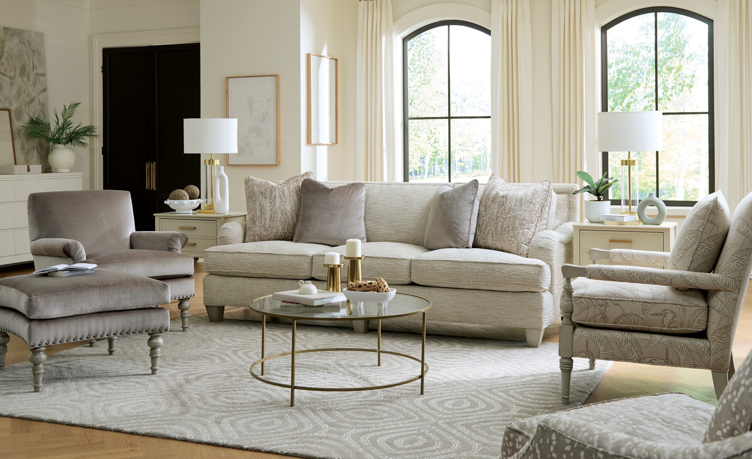 Deep seated, cuddle-up comfort is what this sofa is known for, but the gorgeous design elements are a close second! This generously scaled style is 95″ in length and features classic English arms, a picture-frame style welted back, low tapered legs and plush Downblend seating. 2 pairs of Downblend toss pillows are standard. Also available are the matching loveseat, chair 1/2 and ottoman.